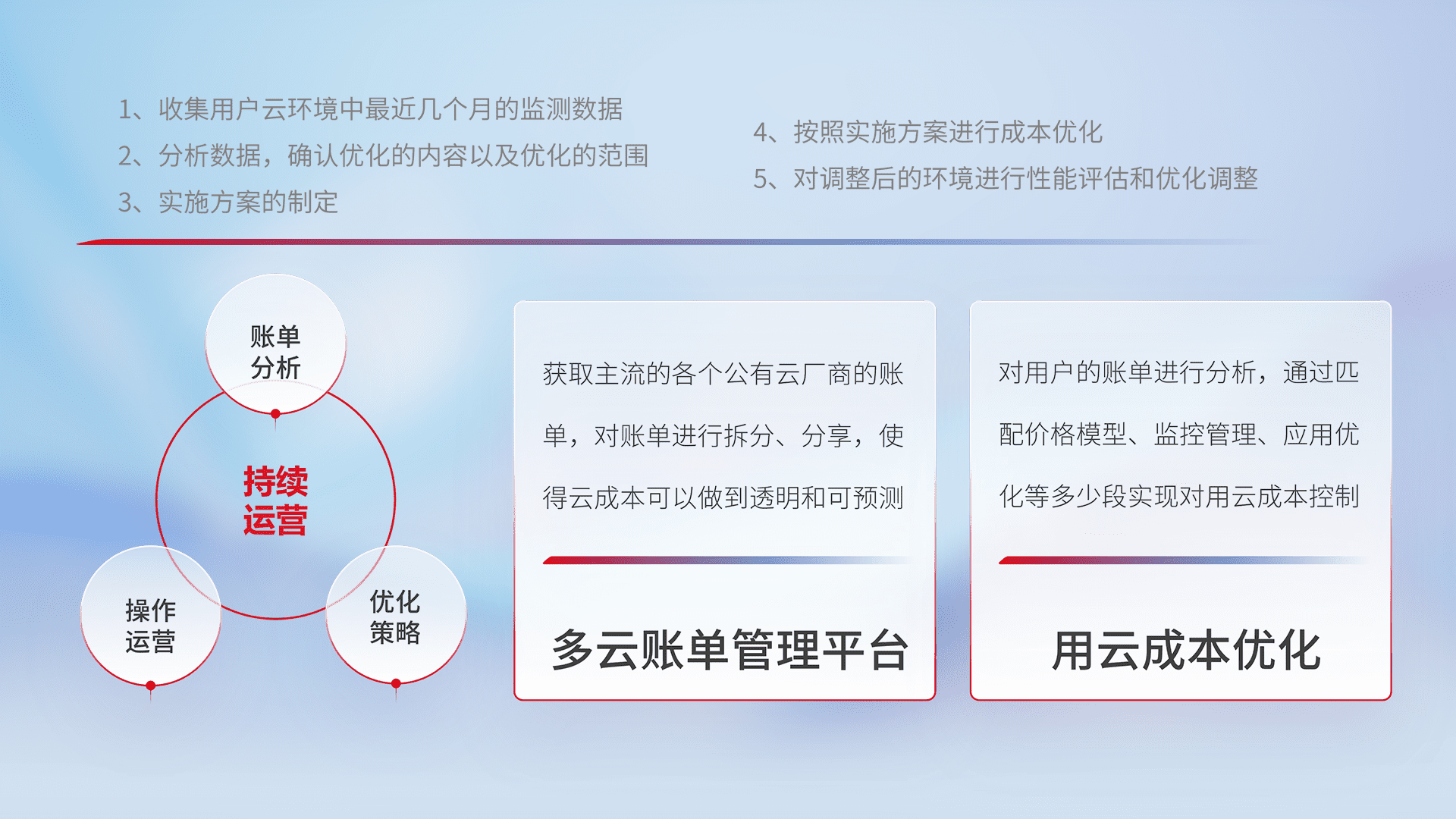 监控业务系统资源开销,,,,对资源的消耗精确计量,,,实现费用的透明化管理,,不断提升资源使用率,,,,调整资源购买方式,,,降低资源费用成本,,用云成本可预测、、用云费用可优化,,,云资源配额有据可依。。